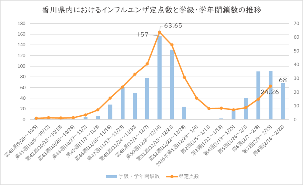 2026年2月20日時点で発表された香川県内におけるインフルエンザ流行状況をまとめました。