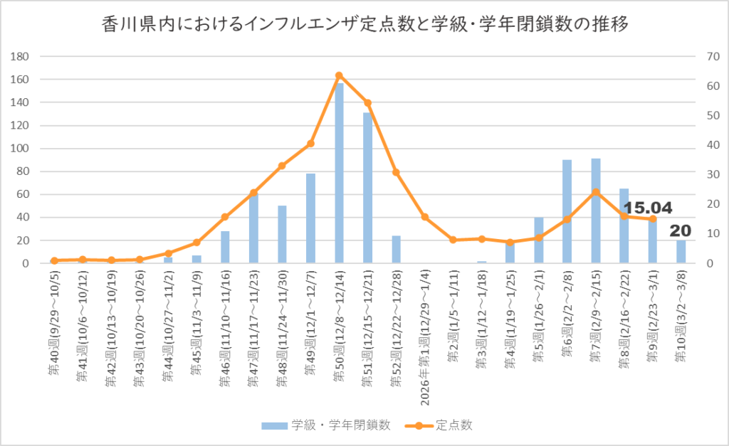 2026年3月6日時点で発表された香川県内におけるインフルエンザ流行状況をまとめました。