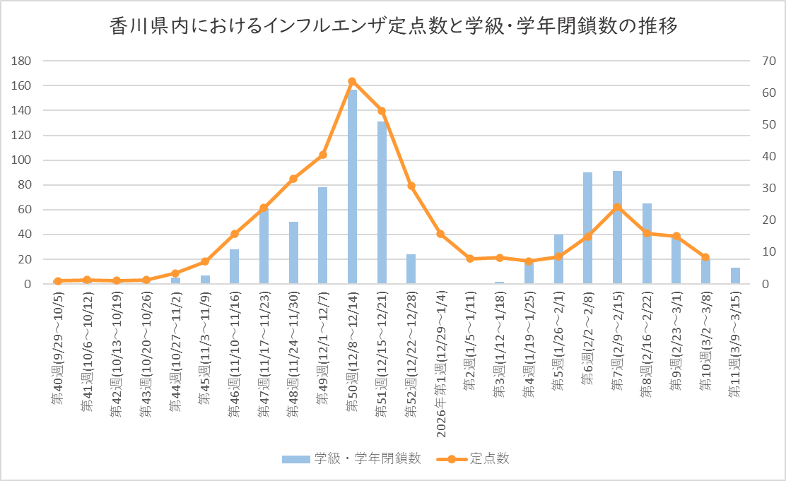 2026年3月13日時点で発表された香川県内におけるインフルエンザ流行状況をまとめました。